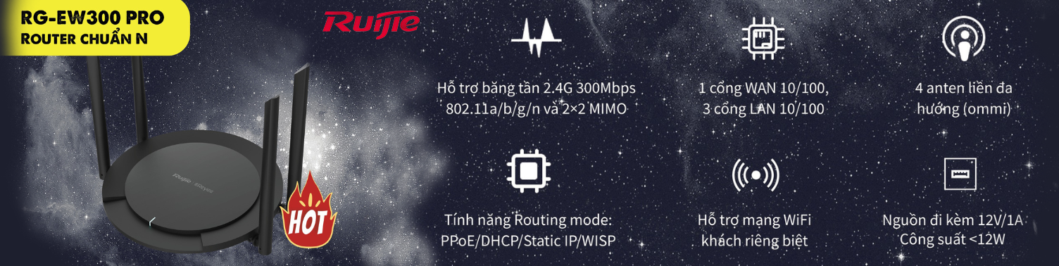 Thiết bị phát wifi Ruijie RG-EW300 Pro tốc độ 300Mbps Wireless Smart Router, băng tần 2.4GHz